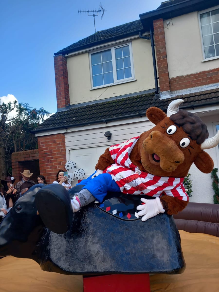 We predominantly hire out the Rodeo bull for private party's, corporate events, and public events throughout Birmingham, Warwickshire, Coventry, Solihull, Sutton Coldfield, and the Midlands areas.