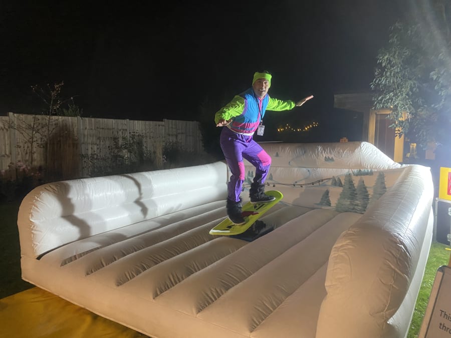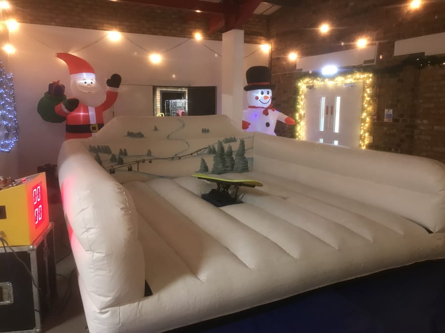 When you book the Snowboard Simulator with us you will get, a trained operator for the machine, all safety mats that are required, lighting for the ride, and an inflatable shelter if needed.